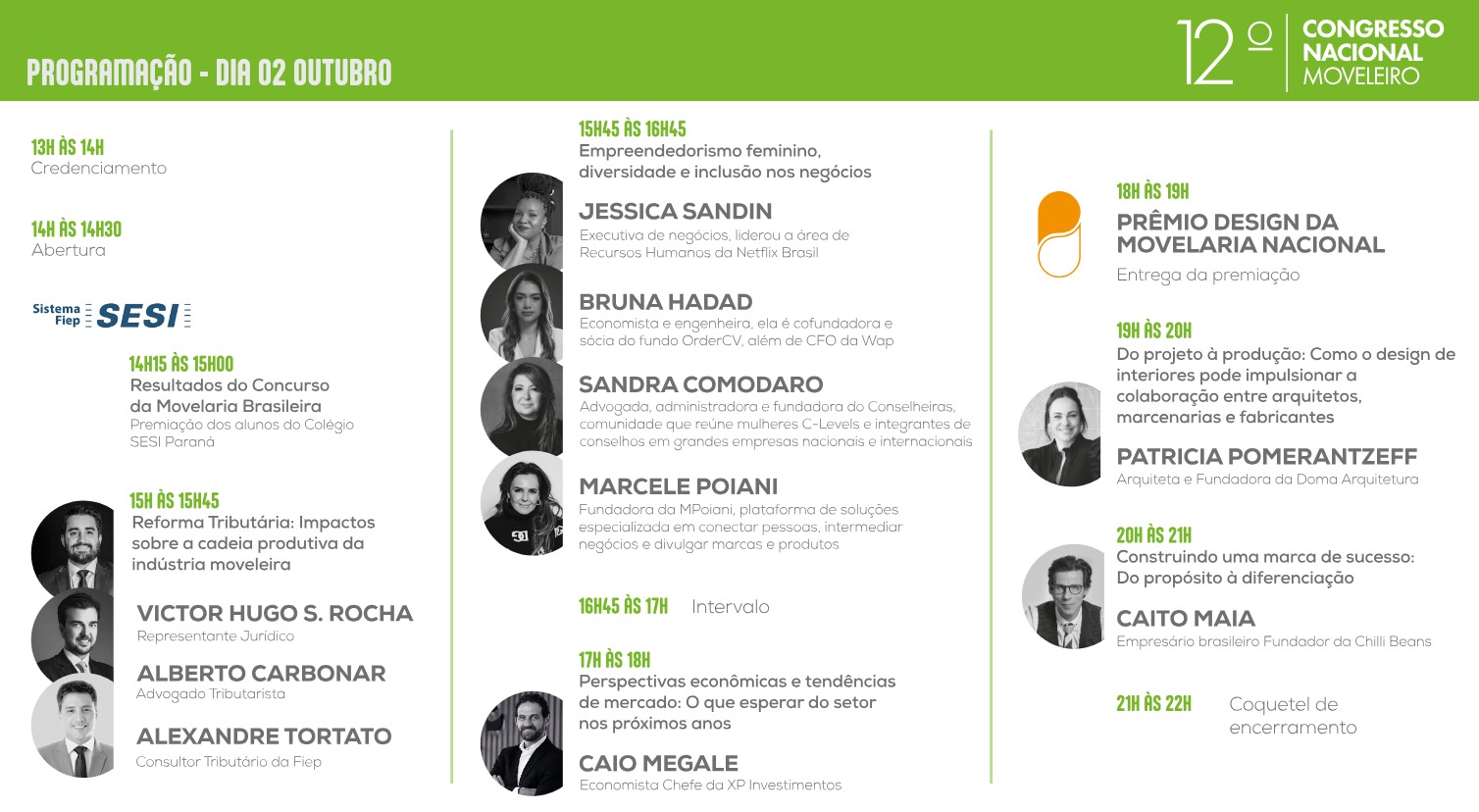 Nos dias 1º e 2 de outubro de 2025, Curitiba (PR) recebe a 12ª edição do Congresso Nacional Moveleiro, promovido pela ABIMÓVEL (Associação Brasileira das Indústrias do Mobiliário) e pelo Sistema FIEP (Federação das Indústrias do Estado do Paraná), com apoio da CNI (Confederação Nacional da Indústria) e do Conselheiras, no Campus da Indústria.