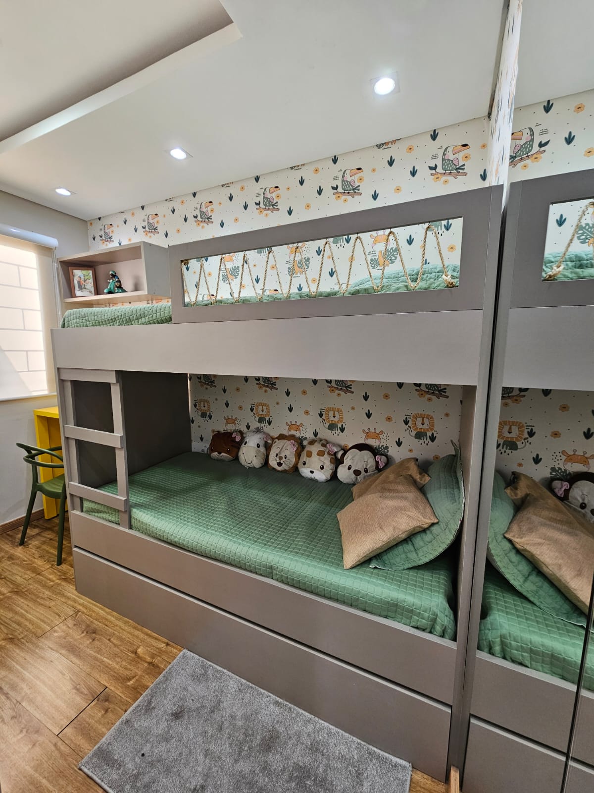Em apartamentos compactos, a funcionalidade é prioridade. Móveis multifuncionais como camas com gavetas, bicamas ou, até mesmo, beliche são opções interessantes para o quarto dos filhos. A cama baú também é uma ótima opção para otimizar o espaço sem perder praticidade. O uso de espelhos e sofá retrátil também são recursos eficientes para dar a sensação de amplitude nos espaços.