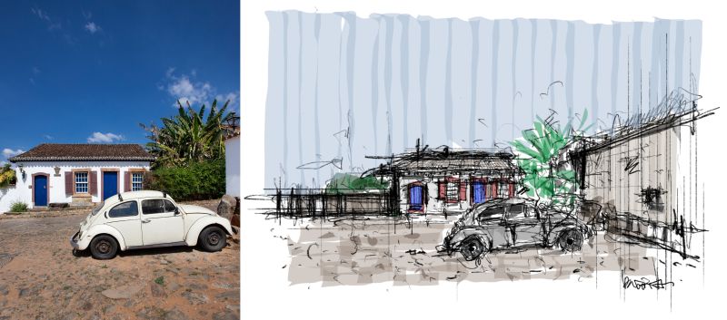Desenvolvida especialmente para integrar a programação da Casa Coral, idealizada pela marca de tintas decorativas da AkzoNobel, a ação empreendida pelos dois é fruto da experiência em retratar a arquitetura. "Ver minhas fotografias desenhadas pelo Basiches com tantos detalhes, me trouxe outro olhar sobre esses espaços", compartilha a fotógrafa.