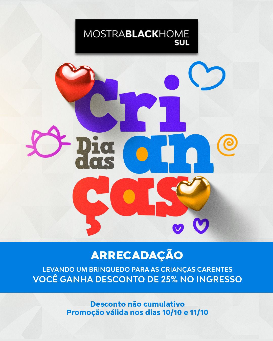 Campanha solidária: Mostra Black Home Sul arrecada brinquedos nos dias 10 e 11 de outubro e dá desconto em ingresso