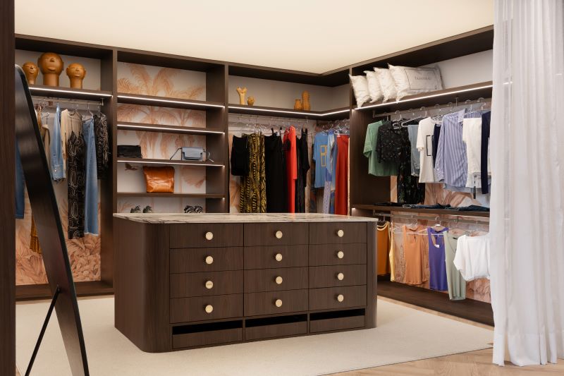 Com um bom planejamento, é possível incluir até um closet aberto no projeto — uma proposta ousada, mas cada vez mais em alta. A marcenaria novamente entra como protagonista, garantindo organização e estética. Para manter o ambiente mais reservado, a solução está em cortinas de tecido leves, que trazem fluidez e um toque de elegância ao espaço, sem pesar visualmente.