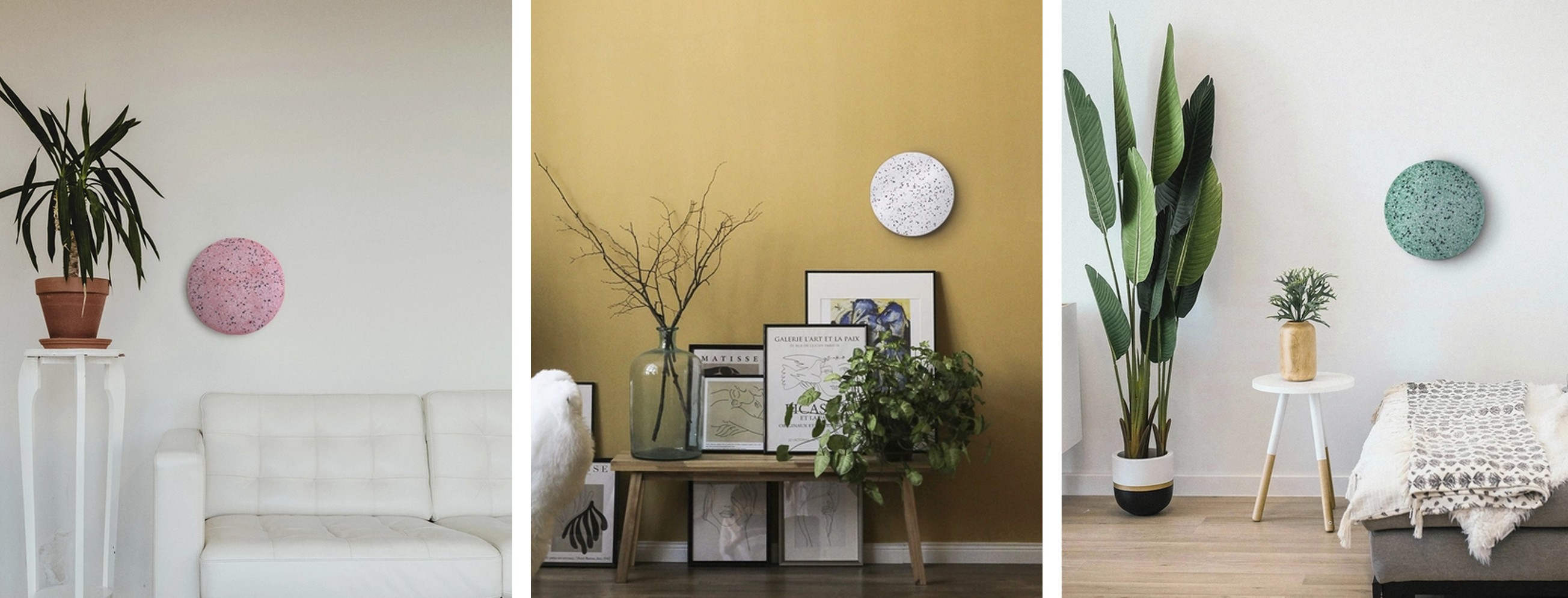 Arandelas Terrazzo, da Yamamura Collection, com LED integrado, potência máxima de 12W e fluxo luminoso de 720lm. As peças possuem temperatura de cor branco quente (3000K). São produzidas em metal e granilite com acabamento polido. Disponíveis nas cores branca, preta, rosa ou verde. Indicadas para ambientes internos, como dormitórios, salas de estar e jantar, halls de entrada, quartos e lavabos. Modelos em três diferente tamanhos: P (18 cm diâm); M (24 cm diâm) e G (32cm diâm).