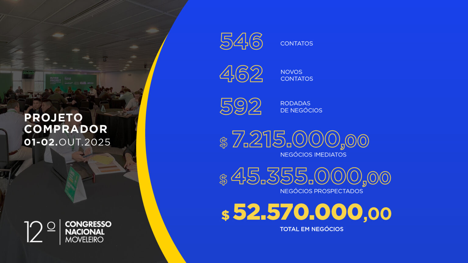 Inserido de forma estratégica na programação do 12º Congresso Nacional Moveleiro, o Projeto Comprador, promovido pela ABIMÓVEL (Associação Brasileira das Indústrias do Mobiliário) em parceria com a ApexBrasil (Agência Brasileira de Promoção de Exportações e Investimentos), reforçou o propósito do evento de conectar empresas e gerar negócios.