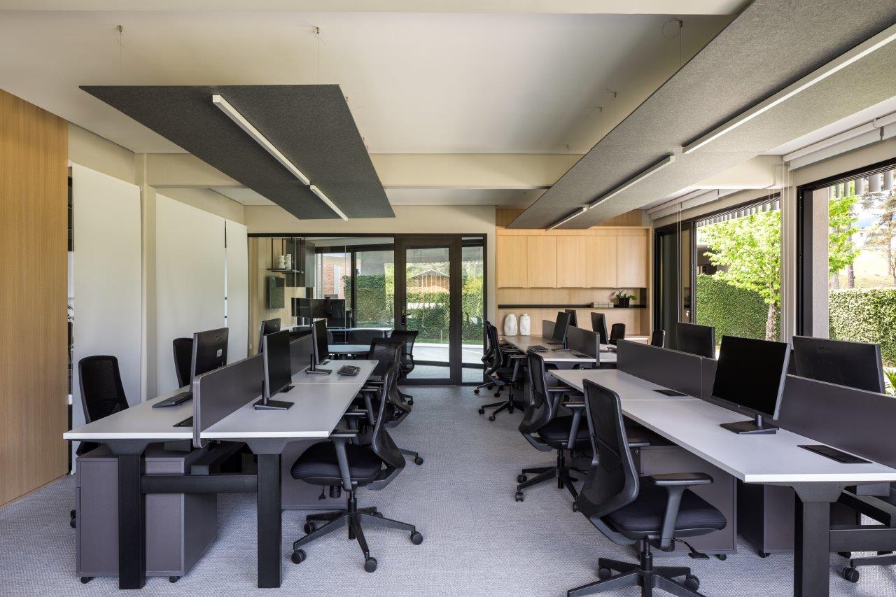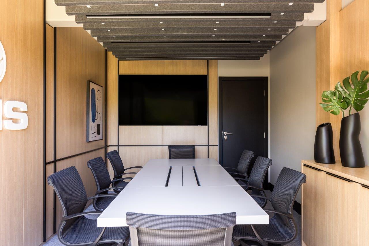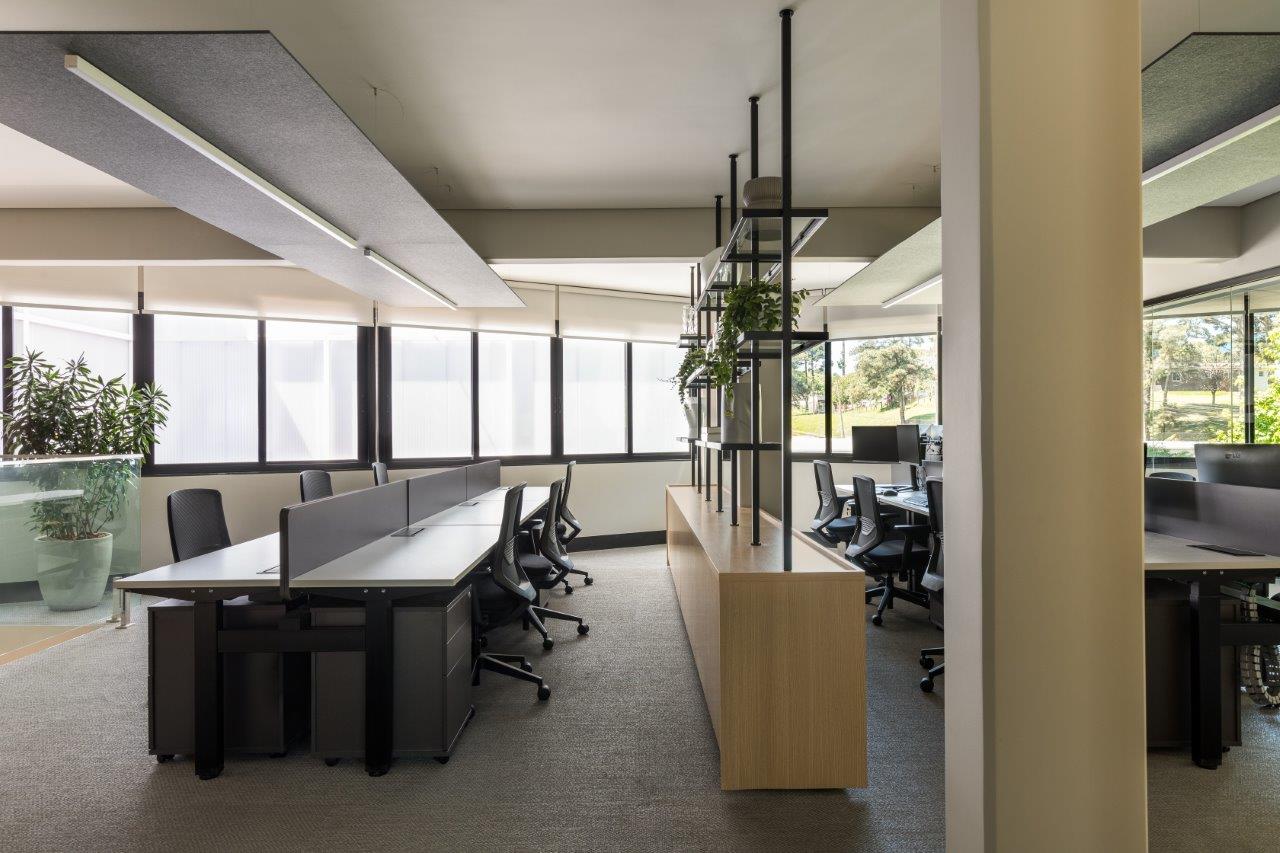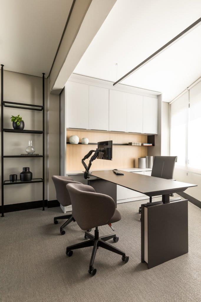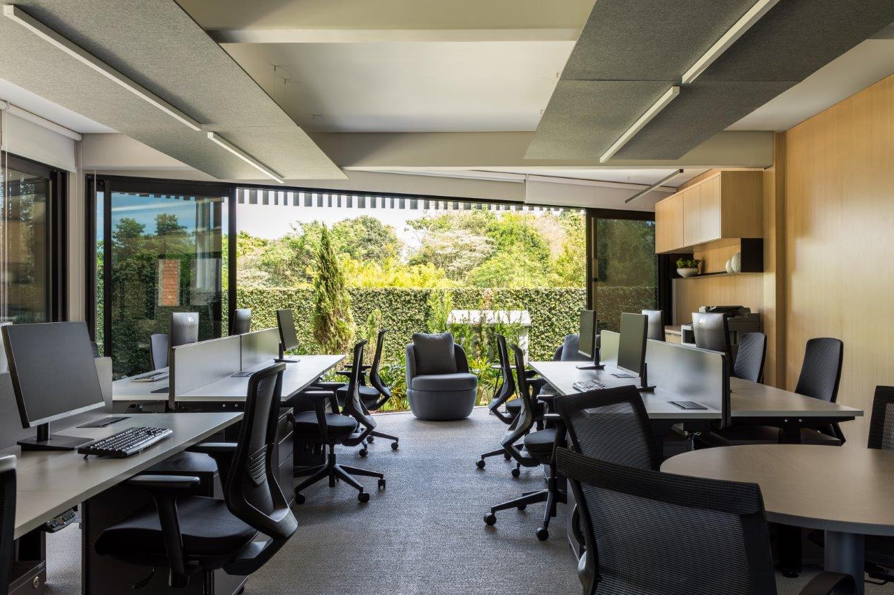 O prédio passou a abrigar o CEO, diretores, gerentes e a equipe financeira, exigindo soluções para melhorar acústica, conforto térmico, praticidade e produtividade. A planta interna foi totalmente reformulada; embora o formato hexagonal tenha sido mantido devido às estruturas preservadas, os espaços foram reorganizados para atender às demandas de uma rotina corporativa contemporânea. A nova disposição priorizou a fluidez, integrando ambientes com painéis de vidro transparente que permitem tanto integração quanto privacidade, conectando interior e exterior de forma harmoniosa por meio de materiais que refletem a identidade da marca.