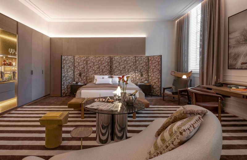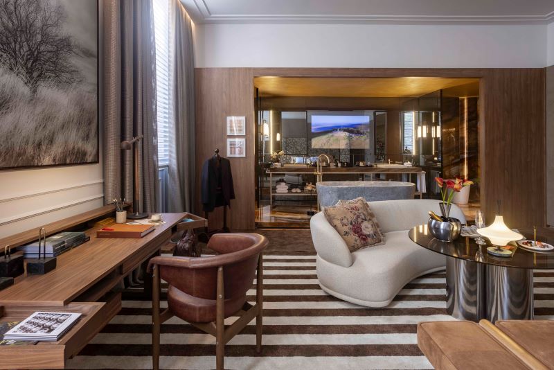 A Suíte Hotel Ouro do Cerrado, de Sérgio Viana, reúne elementos da cultura mineira, mas é cosmopolita e atemporal. Fugindo da ostentação, a proposta é que o hóspede tenha à mão todas as comodidades necessárias para uma boa estadia, incluindo uma excelente área de trabalho na suíte.