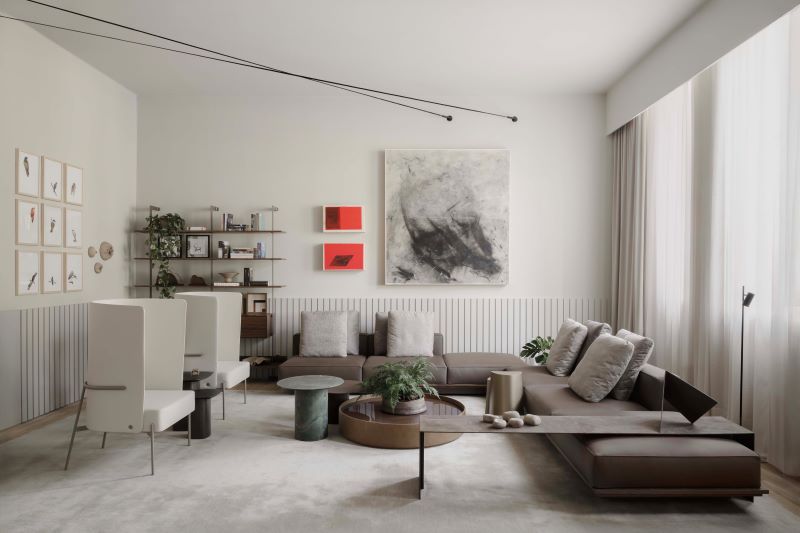 O Gabinete, projeto da Em Cena Arquitetura, apresenta um escritório construído como uma espécie de "santuário" para um grande executivo com foco na alta performance e no bem-estar. Conciliando a rotina de trabalho e atividades físicas, o espaço carregado de bom design e obras de arte, ainda conta com equipamentos de última geração, da Life Fitness, como a esteira como peça central, simbolizando o movimento constante. A ideia foi criar uma espécie de oásis, onde trabalho e cuidado coexistem.