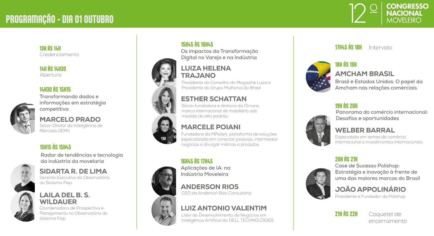 Sob o tema “Conectando Empresas e Gerando Negócios”, industriais, varejistas, importadores, designers, arquitetos, autoridades públicas e lideranças do setor se encontram para discutir o presente e o futuro de uma indústria que é a sexta maior produtora de móveis do mundo, movimentando mais de R$ 91,5 bilhões ao ano e exportando para cerca de 180 países; gerando emprego, renda, investimentos e integração regional.